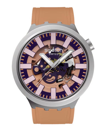 Swatch Terracotta Tide 47Mm Quartz Tan Dial Beige Rubber Strap Sb07S119