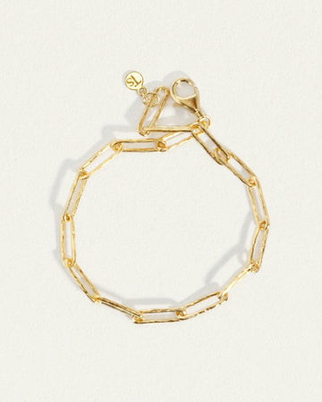 The Kiya Bracelet, in tumbled 18K Gold Vermeil, is an opulent link chain that pays...