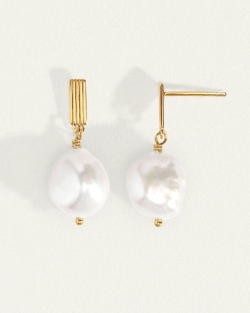The Baroque Pearl Earrings showcase freshwater pearls hanging from textured 18k gold vermeil studs. The...