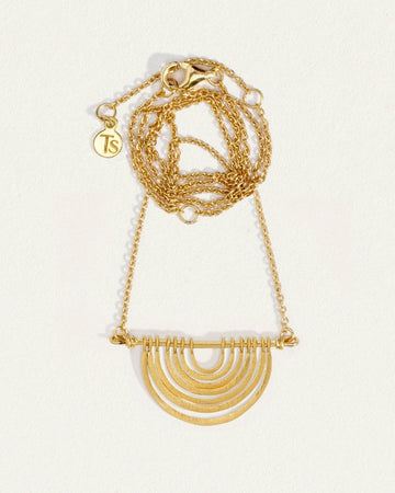 A fine looped chain meets in the middle of the Baye Necklace to hold seven...