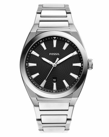 This 42mm Everett features a black sunray and textured dial, three-hand date movement and stainless...