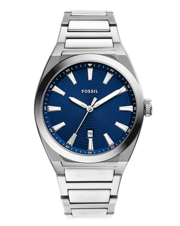 This 42mm Everett features a blue sunray and textured dial, three-hand date movement and stainless...