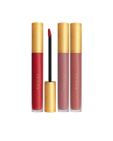 Gucci Rouge à Lèvres Liquide Mat has a transformative cream-to-powder texture with a transfer-proof soft-matte...