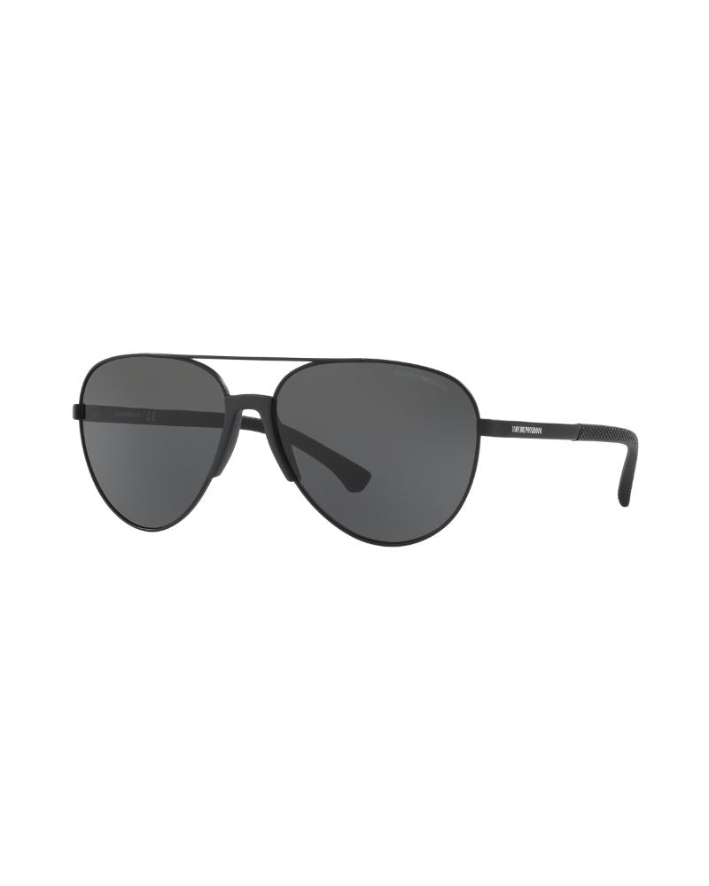 Emporio Armani pilot black metal sunglasses with grey lenses. Come in a designer-stamped case.