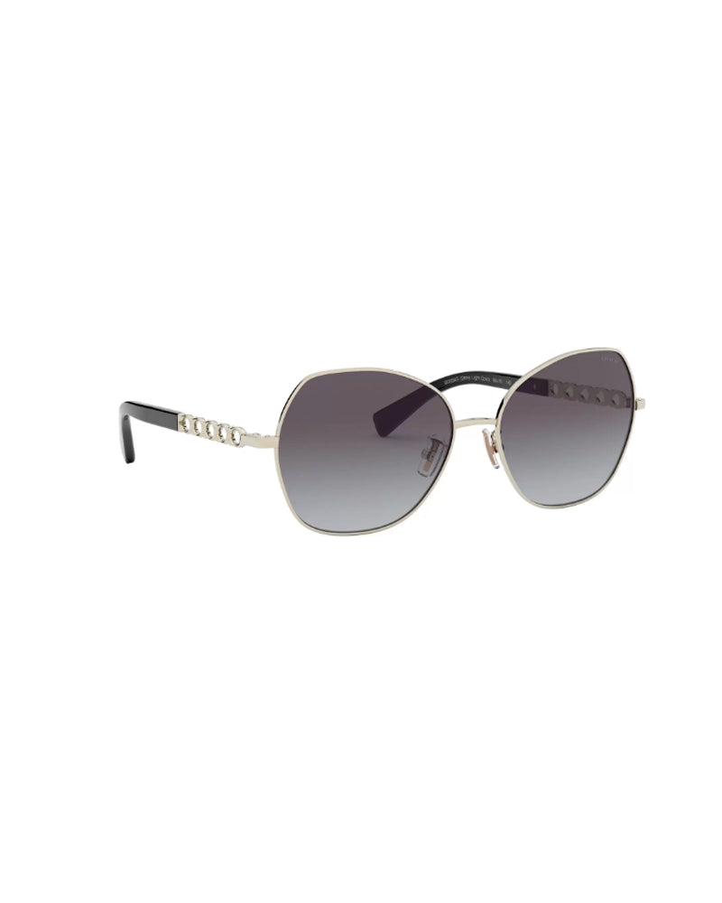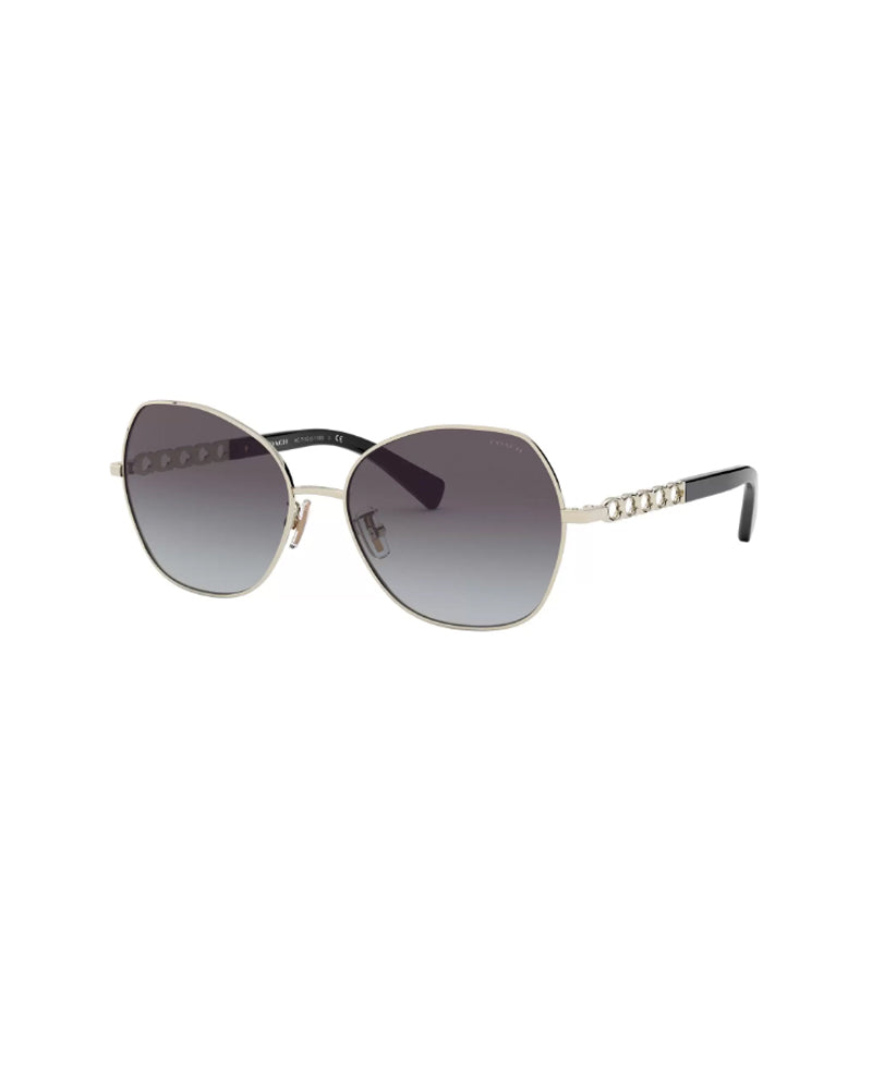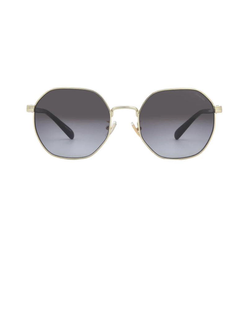 Coach Sunglasses. Series number: HC7147. Color code: 90058G. Shape: Oval. Lens Width: 56 mm. Lens Bridge: 20 mm. Arm Length: 140 mm. 100% UV protection. Non-Polarized. Frame Material: Metal. Frame Color: Shiny Light Gold. Lenses Type: Grey Gradient. Rim Style: Rimless. UPC/EAN code: 725125393324. Coach Grey Gradient Oval Ladies Sunglasses HC7147 90058G 56.