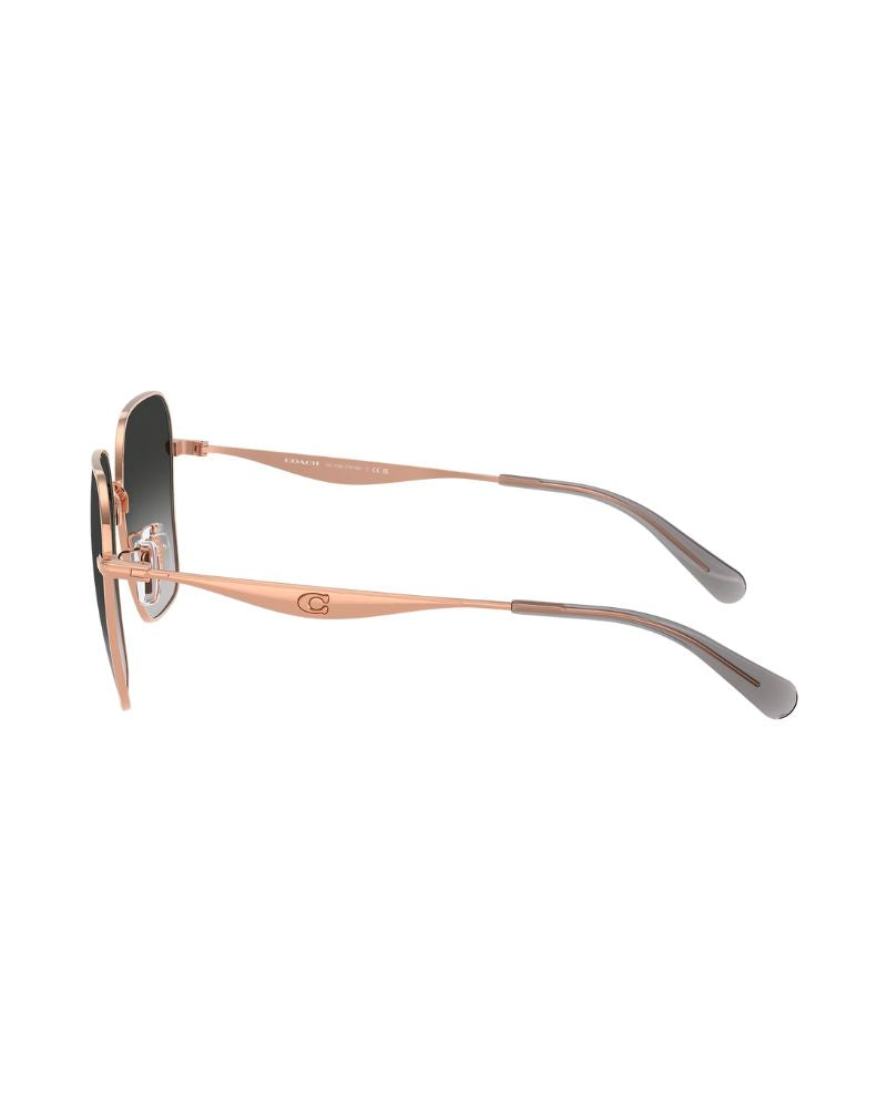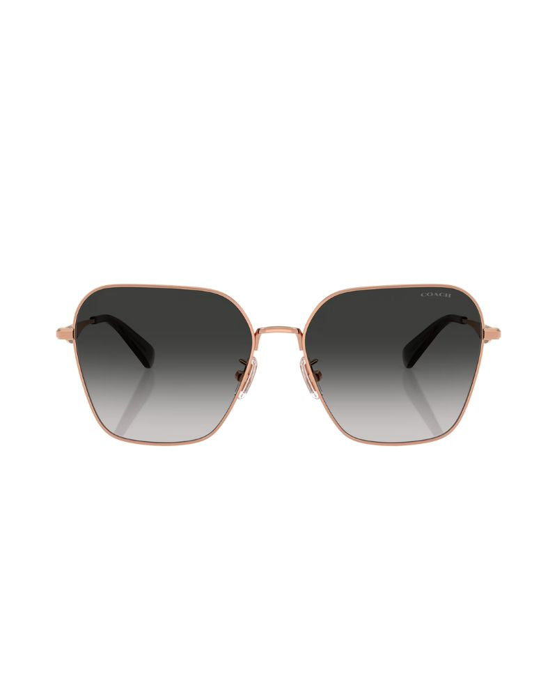 Coach CW189 are a stylish metal frame with grey gradient lenses that effortlessly blends modern flair with vintage appeal. The shiny rose gold color and irregular shape exude urban sophistication, while the saddle bridge adds an extra touch of uniqueness to this design. With its full coverage lenses and comfortable fit, these sunglasses offer both style and substance.