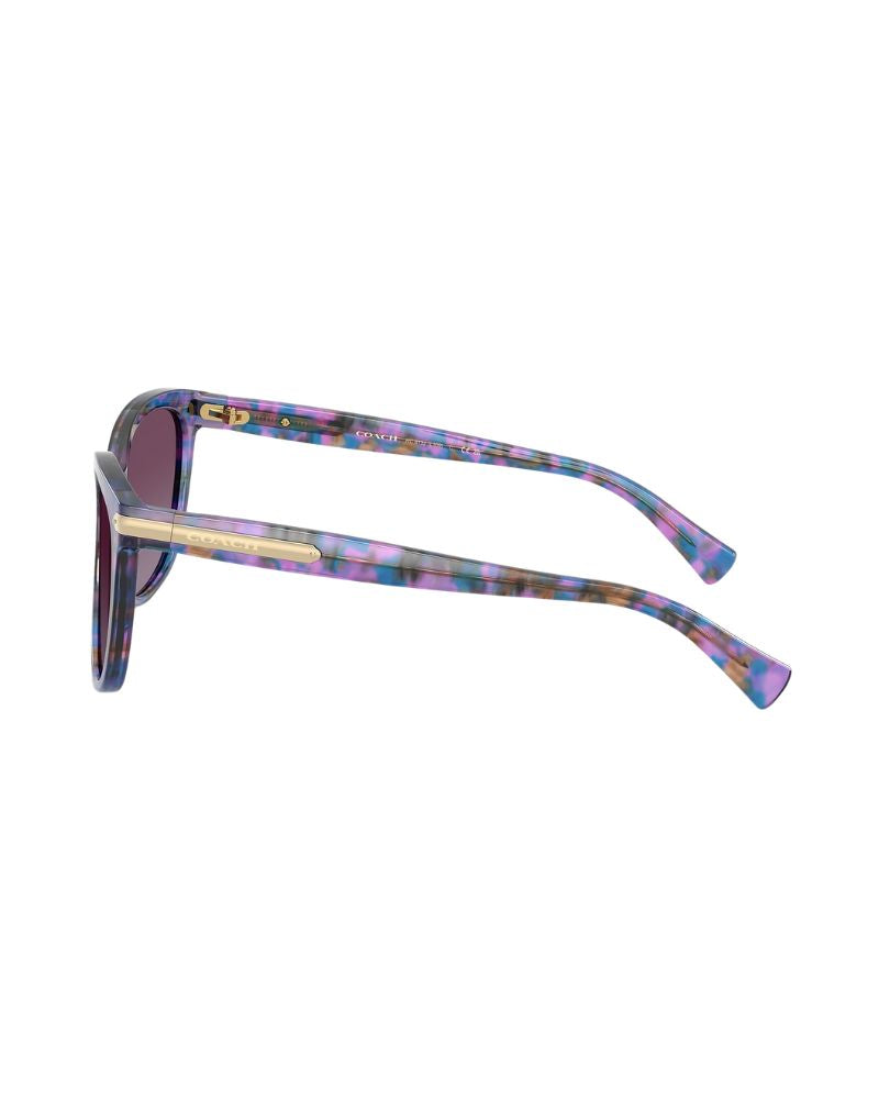 Introducing Coach L109 sunglasses, a perfect blend of style and sophistication. This cat eye Coach sunglass comes in a purple confetti tortoise frame with purple gradient lenses.