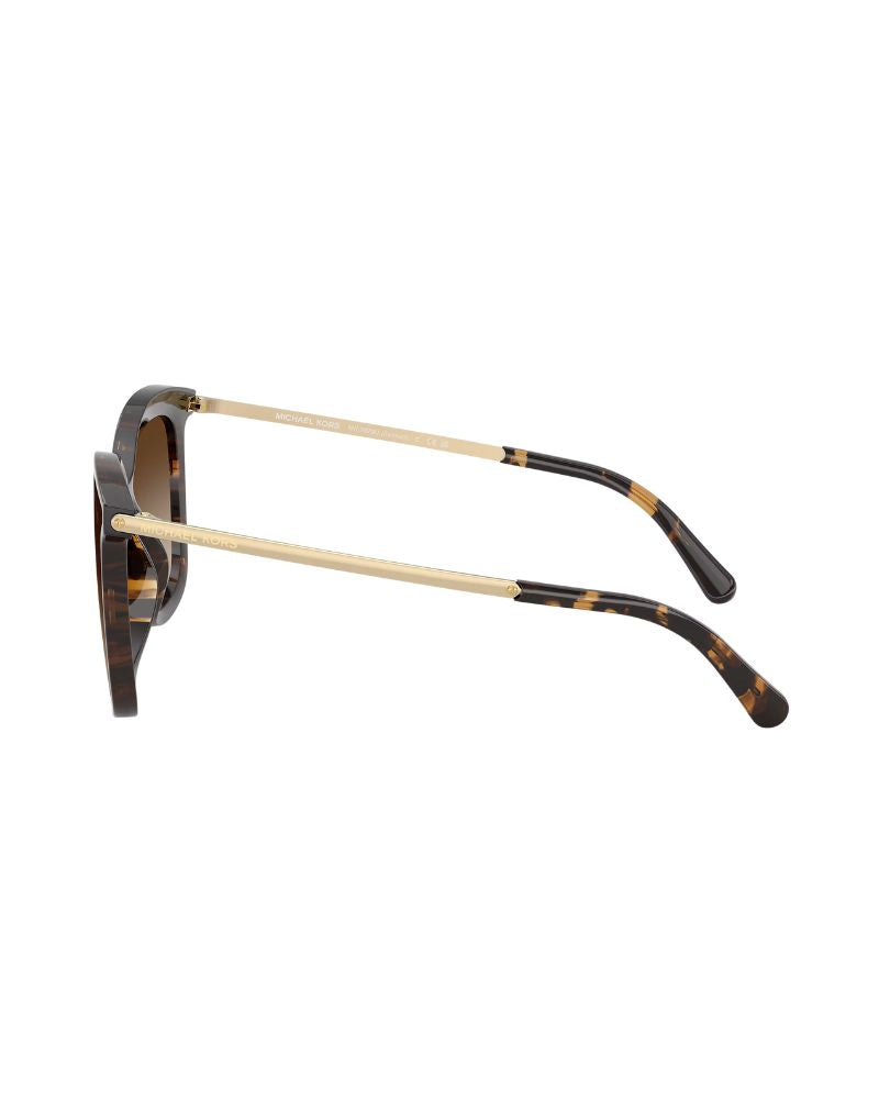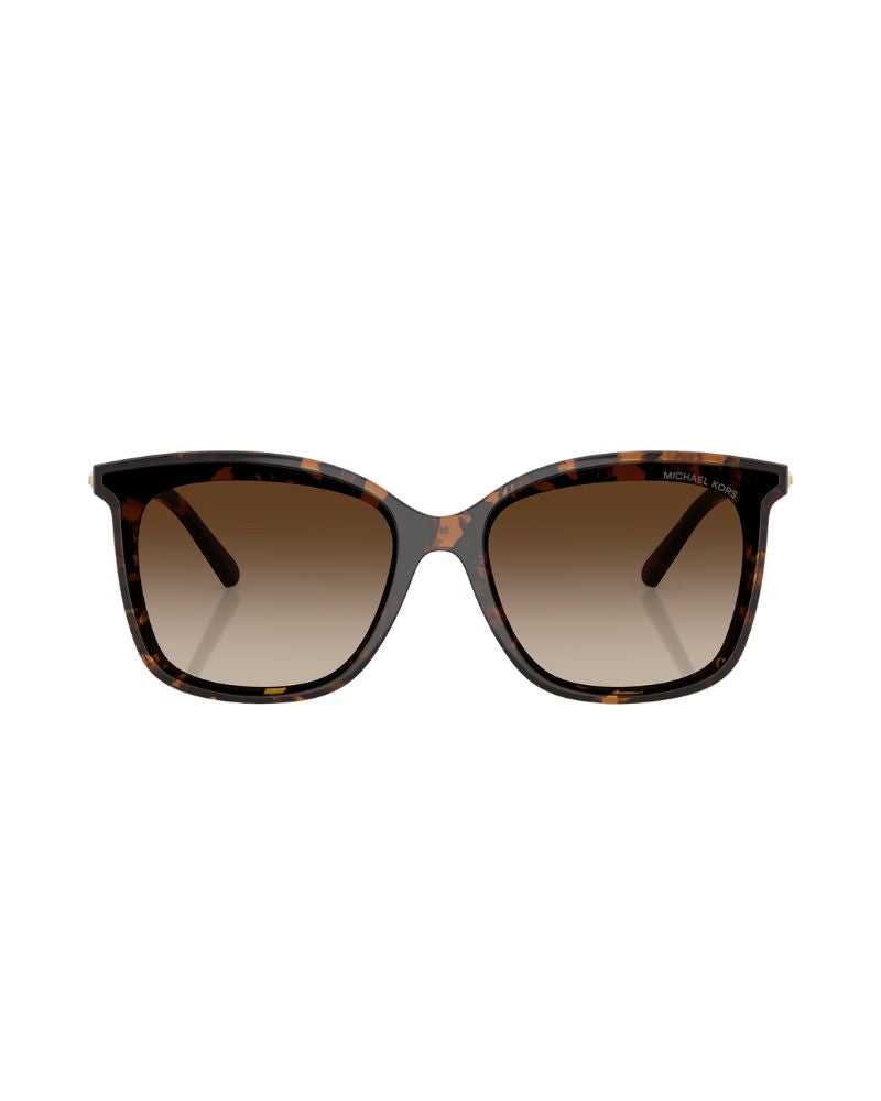 Introducing Michael Kors Zermatt, a stylish addition to the designer's iconic sunglass collection. Featuring a square frame with dark tortoise color and smoke gredient lenses, these shades exude sophistication and elegance. The polished finish on the front adds an extra touch of glamour, while the temples feature the iconic MK lettering in silver for an unmistakable design statement. Elevated yet understated, these sunglasses embody timeless allure with their exquisite blend of trendsetting style and versatile colour palette.
