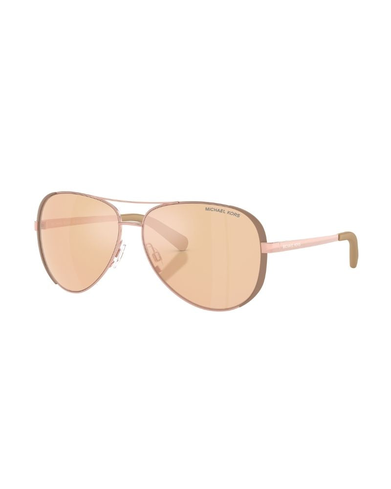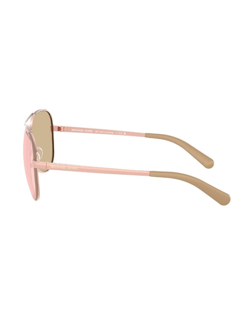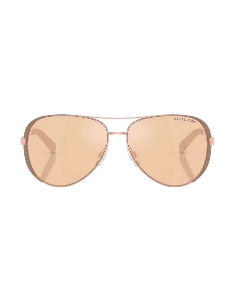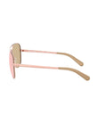 Introducing Michael Kors Chelsea sunglasses, a new icon in the world of luxury. With its pilot shape and metal frame, these shades embody modern elegance. The rose gold lenses provide a striking contrast to the taupe color on the front and temple tips, while solid mirror treatment adds an extra touch of sophistication to this exquisite design. Elevated by iconic branding on both temples and featuring 100% UV protection, these shades exude timeless allure with their classic rose gold/taupe color combination that will never go out of style.