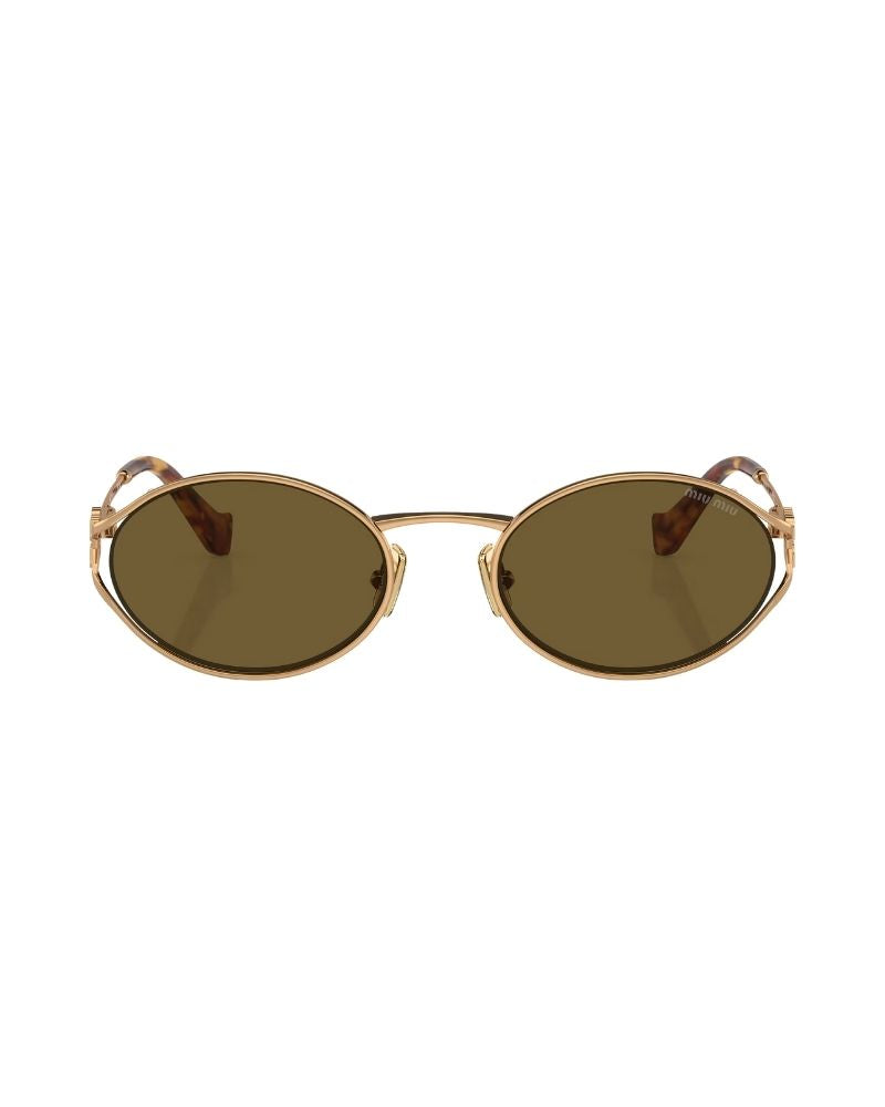 Discover the Miu Miu MU 52YS, a captivating embodiment of timeless elegance. The solid dark brown lenses exude sophistication, while the oval metal frame in brass gold adds an extra touch of refinement to this exquisite design. Crafted from high-quality metal material, these shades boast durability and longevity for years to come. Elevated by their iconic bow detail on the temples, these sunglasses offer both style and functionality for a complete package that is sure to impress even the most discerning fashionistas.
