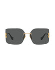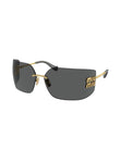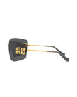 Established in 1993, Miu Miu is Prada's rebellious, spontaneous, and emancipated little sister. An expression of contemporary femininity and freedom, these frames are for the young at heart, wild things. This rimless wraparound style is a standout piece of their current season and lives up to their rebellious nature as a brand. The unique front and standout logos on the lenses make for a must have accessory this season.