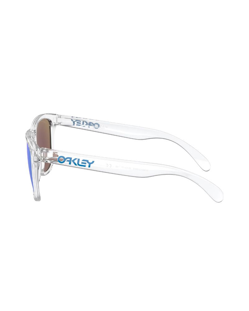 The Oakley Frogskins™ sunglasses are a square-shaped, stylish addition to your collection. Crafted from o matter material with a polished crystal-clear frame color and prizm sapphire lenses, these unisex shades offer maximum protection against harmful UV rays and glare while providing exceptional clarity and visual performance in the crystal clear hue. The square shape of the frames adds an extra touch of sophistication to the overall design, making them perfect for those who want to make a statement without being too flashy.