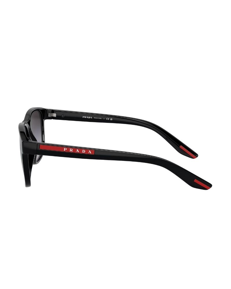 Elevate your style with Prada Linea Rossa PS 06YS sunglasses, a perfect blend of iconic Red Stripe design and contemporary aesthetics. The pillow shape pillow frame is crafted from premium material for a comfortable fit and feel all day long. Featuring grey gradient lenses, this model exudes sophistication and elegance while maintaining an unmistakable sporty flair. Elevated by the iconic Red Stripe on the temple tips, these shades boast an understated yet striking black color that complements any outfit effortlessly.