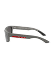 Elevate your style with Prada Linea Rossa PS 05ZS sunglasses, a perfect blend of sophistication and modern design for men. Featuring solid grey mirror silver lenses, these sunglasses provide a sleek and reflective look while ensuring optimal protection from the sun. The polished grey metal frame, made from high-quality injected material, enhances durability and comfort. With a classic rectangular shape, these sunglasses offer a timeless appeal suitable for any occasion. Experience the luxury and functionality of Prada with these impeccably crafted shades, designed to make a bold fashion statement.