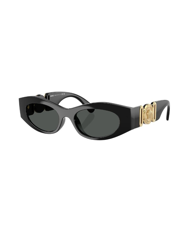 Elevate your style with the exquisite elegance of Versace VE4480U sunglasses. These solid dark grey lenses add a touch of sophistication to the iconic oval frame shape crafted in black color with polished finish. A true embodiment of timeless glamour, these shades effortlessly blend modern design elements with vintage flair for an overall look that is both contemporary and sophisticated. Embrace the allure of Versace's latest collection and discover a harmonious blend of past and present styles that speaks to fashion enthusiasts of all ages.