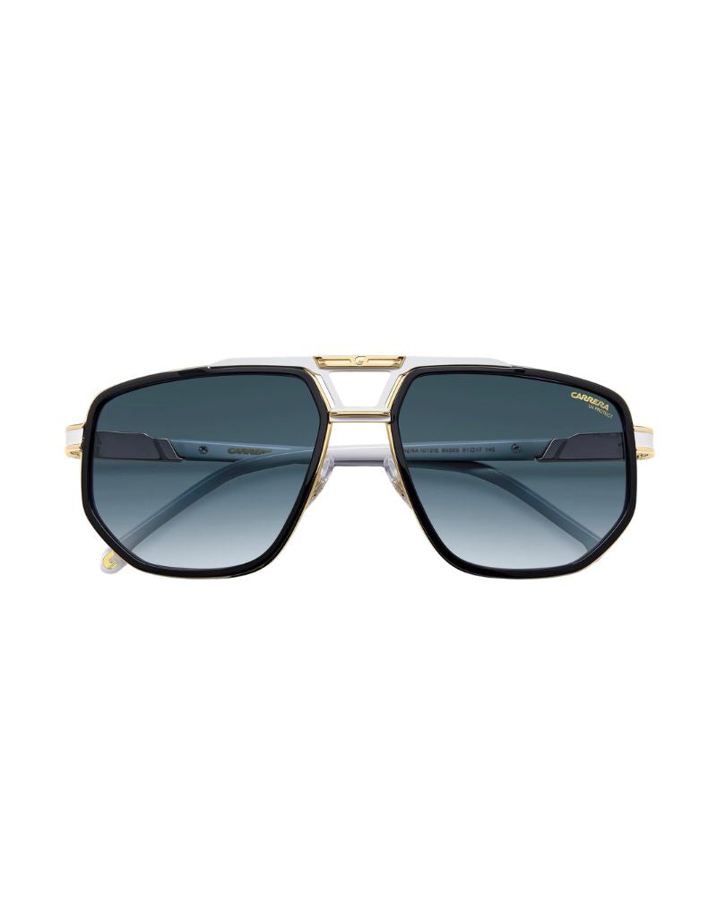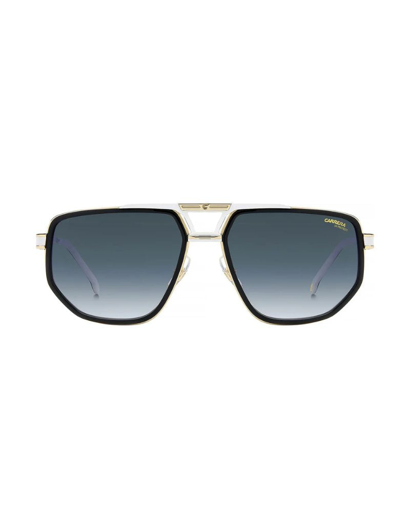 The powerful spirit of Carrera is expressed in these sunglasses. The front is a triumph of details: a stainless steel structure, acetate coating, and a double bridge with a horizontal flag on the top bar. The temples are no less striking, recognizable thanks to the prominent ‘Carrera’ name. They come in many different colourways, including two-tone, transparent and marble-effect, with polarized or mirrored lenses.