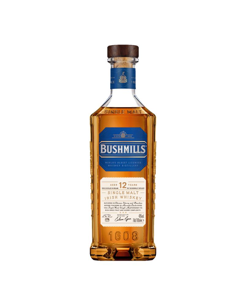 Bushmills 12 Year Old single malt whiskey is triple distilled from 100% malted barley and matured in Oloroso sherry butts and bourbon barrels before being finished in marsala barriques from Sicily. These fortified wine casks layer on extra notes of ripe spiced fruit, deeper sweet notes, like brown sugar and a delicate nutty dryness.