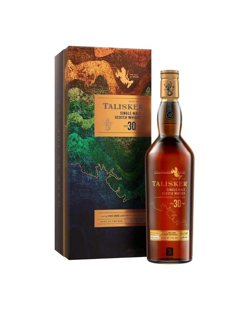 Talisker's 30 Year Old Single Malt Scotch Whisky is an elegant and complex expression with Talisker hallmarks of pepper and smoke in a softer and subtler way. The palate is a lively yet mature delight, like the favourite uncle you don’t see very often. Immediately sweet, rich, peppery and hot, with just the right amount of balancing bitterness and salt with no rough edges. An underlying woody smokiness brings everything together.