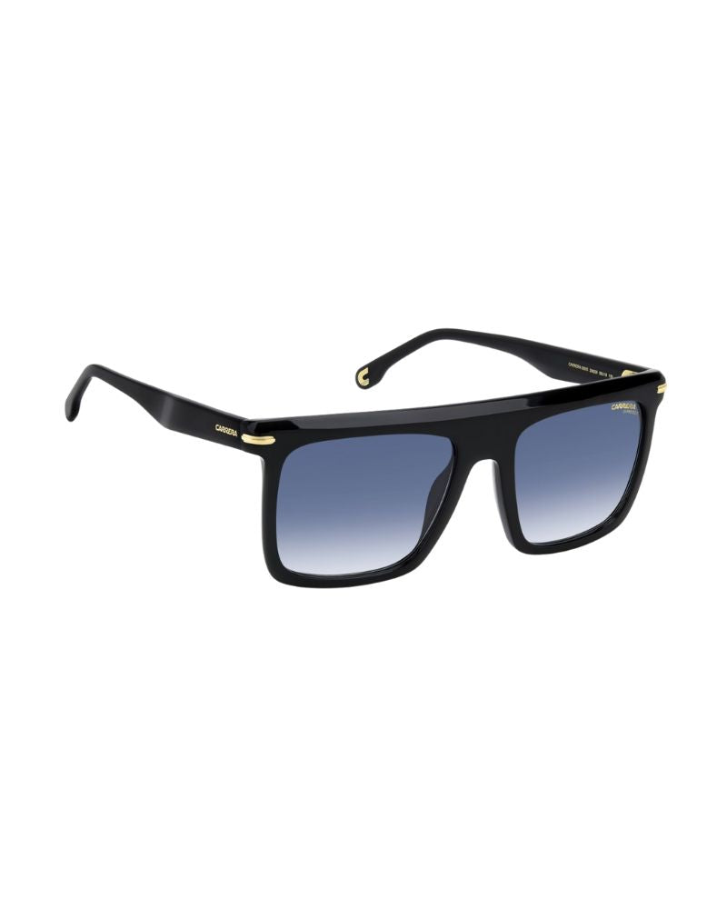 Carrera 359/S 2M2 08 sunglasses for men, featuring black gold rectangular acetate frame and dk blue shaded lenses. Striking and eye-catching, these Carrera sunglasses are a masterpiece of timeless beauty. It’s all thanks to the bold front which is flat along the top, with notable proportions and oversize volumes. Yet the glasses remain lightweight. Among the colourways are the blue gradient lenses Carrera is known for, or polarized options for optimal vision. Brand line: Signature.
