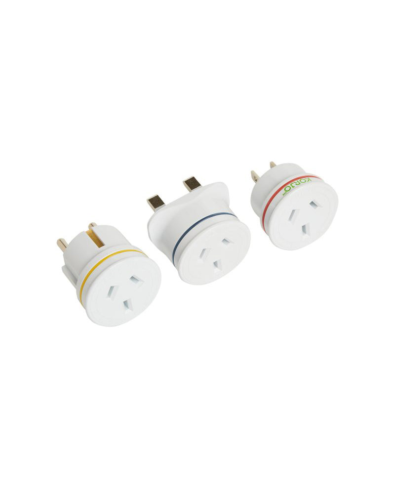 The Korjo Adaptor – Set is for use with Australian / NZ appliances when travelling overseas. It contains the 3 most popular travel adaptor destination types – Europe, UK and USA