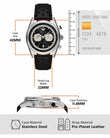 • 42mm case, 22mm band width, mineral crystal, Quartz movement with chronograph analog display, imported.