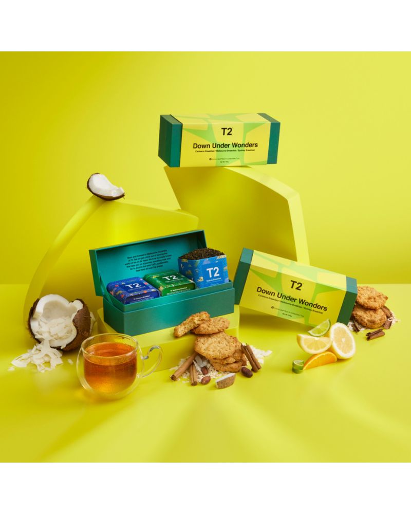 A tower of three iconic T2 Aussie brews! For Sydney Breakfast, think Earl Grey on Oxford Street and you’re almost there. Craving a classic? Take Melbourne Breakfast with all its vanilla and black tea. Then, look to the oats, coconut and rose in Canberra Breakfast – born to bring good counsel to your daily cuppa.
