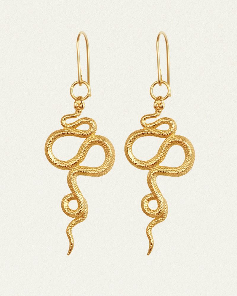 Snakes have always played an integral role in religion, mythology, and literature. Throughout the ages these mystical creatures have come to symbolise fertility and creative life force. The shedding of its skin is symbolic of rebirth, transformation and healing within our lives. The Snake Earring in cross brushed 18K Gold Vermeil calls on the inner wisdom of its wearer; reminding them with each new day that they have the opportunity to rebirth into the best versions of themselves.
