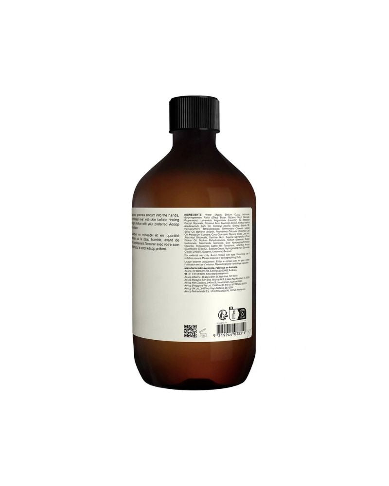 Aesops Eleos Nourishing Body Cleanser features botanicals known for their purifying properties, effortlessly removing surface impurities. Formulated into a rich, comforting texture with nourishing ingredients and a warm, woody aroma this cleanser is Ideal for dry or dehydrated skin. It's mild, emollient-rich emulsion is perfect for daily use, leaving the skin feeling refreshed, soft, and supple.