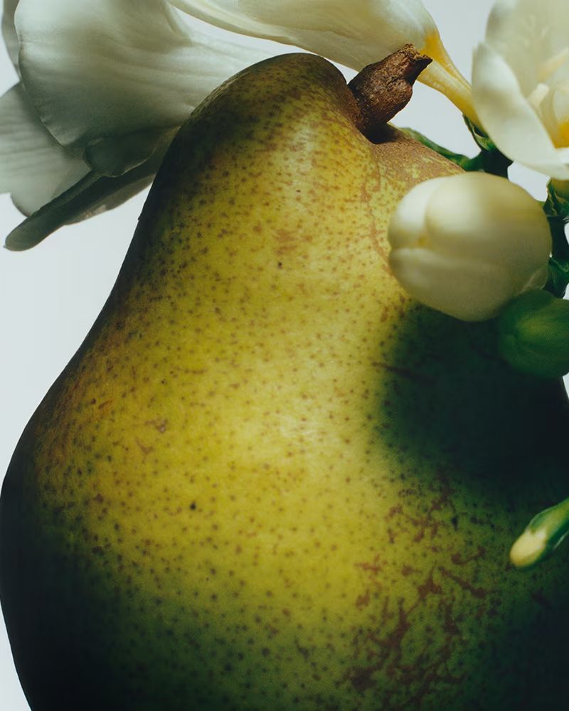 The essence of autumn. The sensuous freshness of just-ripe pears is wrapped in a bouquet of white freesias, and mellowed by amber, patchouli and woods. Luscious and golden.