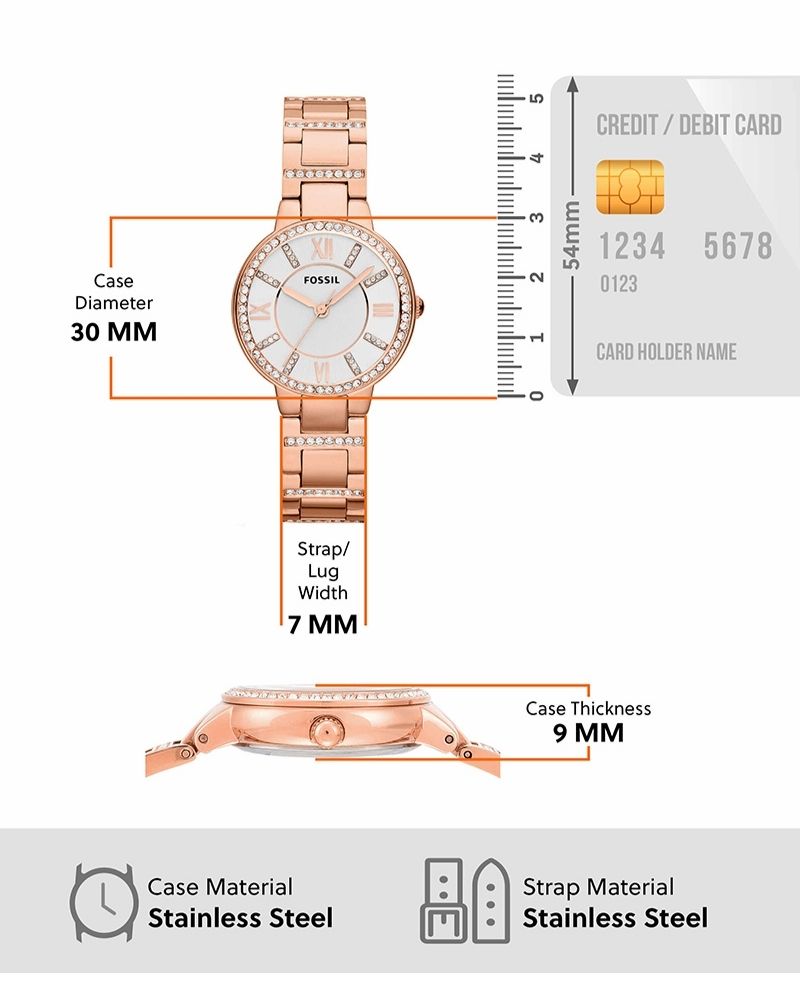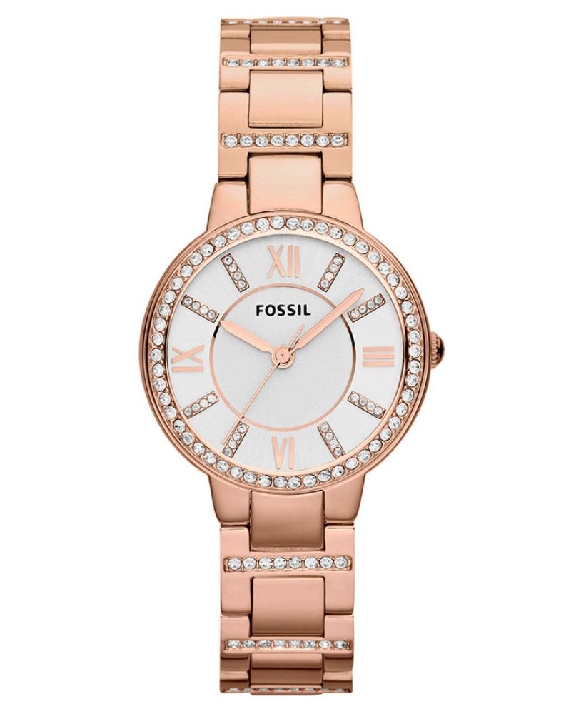 Fossil Virginia Ladies Silver Dial Rose Gold Bracelet - ES3284
