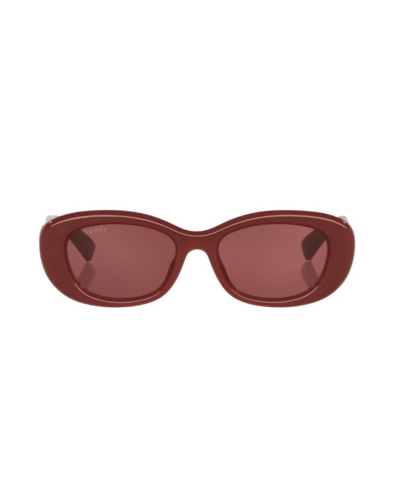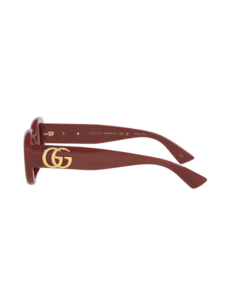 GG1829SK by Gucci are as stylish as they are bold. With a chunky build made from premium acetate and sculpted in an oval shape with the classic house Gucci double G in gold on the arms, these sunglasses stand out from the rest and are not to be missed. GG1829SK come in cool colourways of black with grey lenses, havana with brown lenses and burgundy with red lenses.