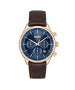 HUGO BOSS GREGOR 45MM QUARTZ CHRONOGRAPH BLUE DIAL BROWN LEATHER STRAP 1514050