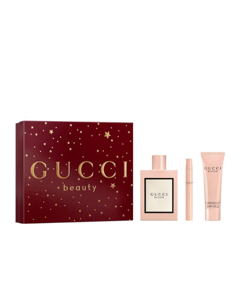 Sparkle under the stars, gift Gucci Beauty. A sophisticated perfume capturing the spirit of the contemporary, diverse and authentic women of Gucci. For Gucci Bloom Eau de Parfum, Alberto Morillas selected the finest ingredients from nature to create an elixir of flowers full of wonder, nobility and mystery. The master perfumer envisioned the addictive scent of this Gucci fragrance as a thriving garden full of diverse types of fresh flowers and the rich fragrance it emits � Bloom is created to unfold like its name. Authenticity is woven through qualitative, highly-concentrated natural ingredients in this perfume for women. Notes of natural Tuberose and Jasmine Bud in this fragrance for women leave an unexpectedly rich white floral scent on the skin. Rangoon Creeper, a plant that changes color when it blooms, infuses a powdery, floral edge. The vine�s flowers are redolent with a slightly powdery, feminine floral perfume. This Eau de Parfum gift set for her contains: - Gucci Bloom Eau de Parfum, 3.3oz (100ml) - Gucci Bloom Eau de Parfum Pen Spray, 0.33oz (10ml) - Gucci Perfumed Body Lotion, 1.6oz (50ml)
