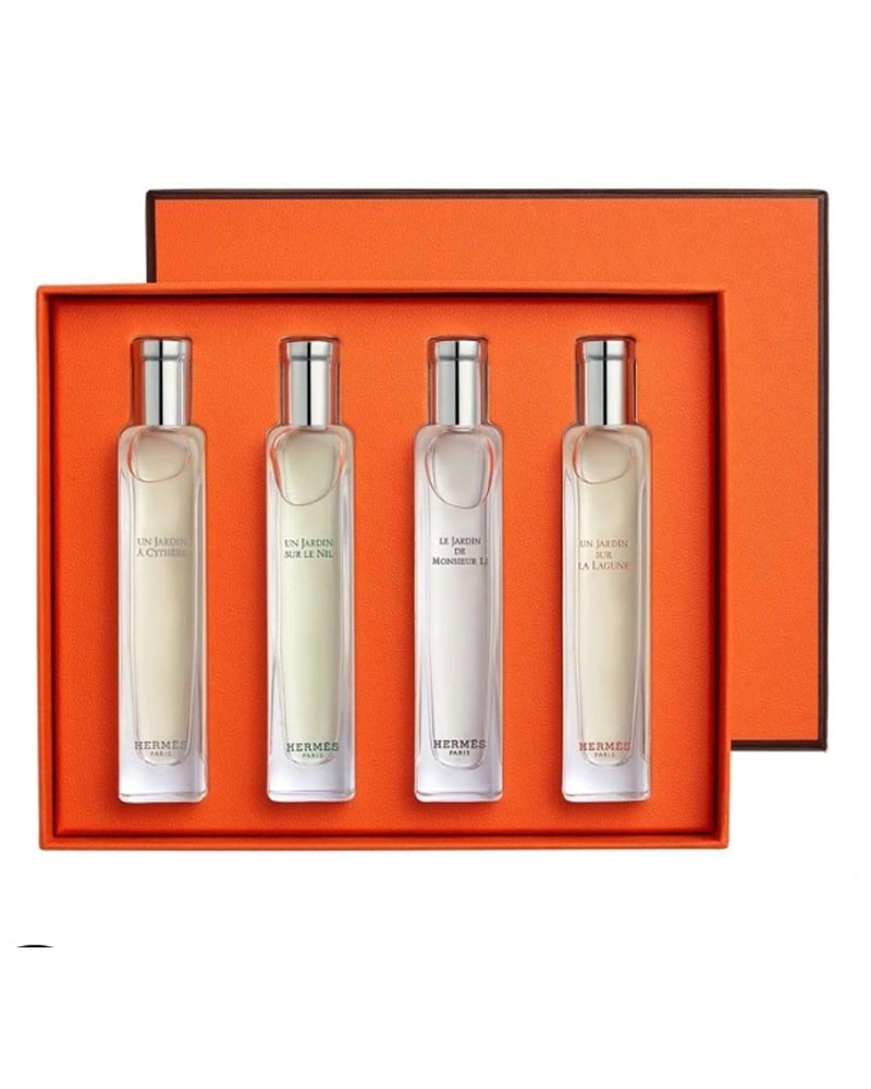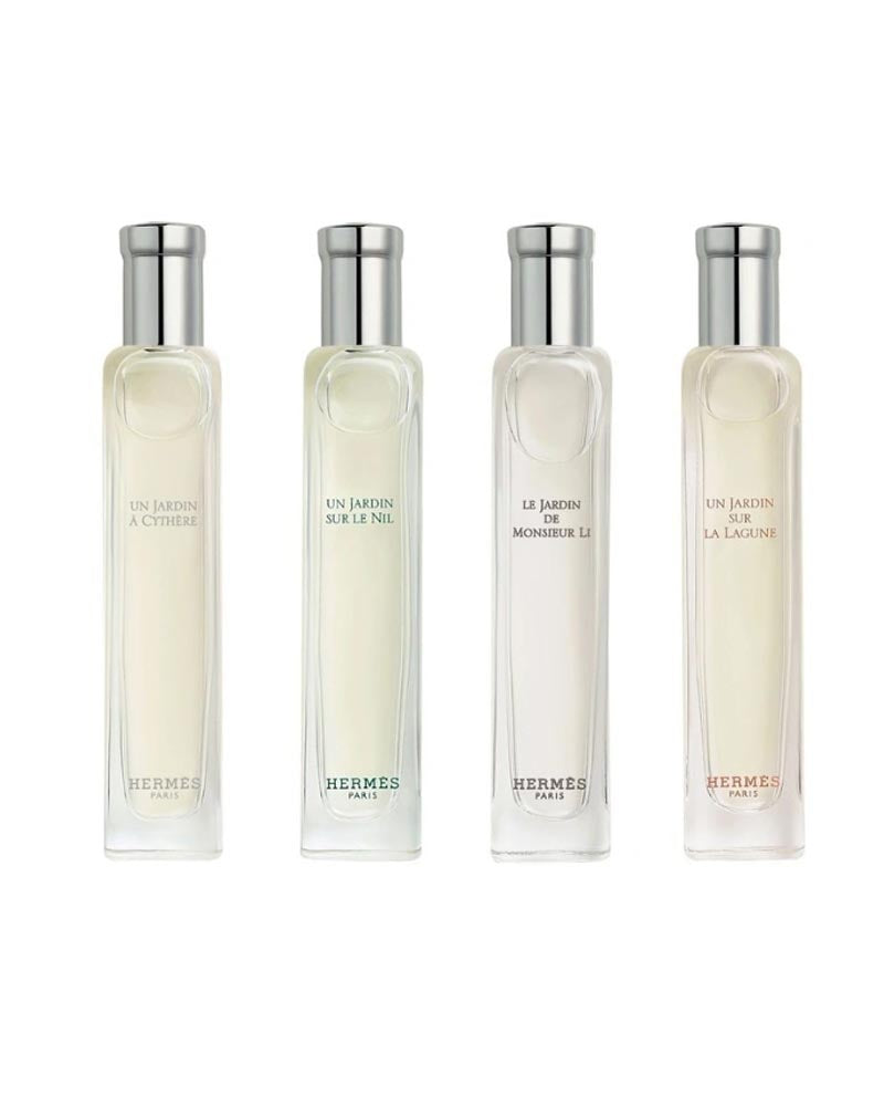The Garden-Perfumes collection travel set comprises four 15 ml sprays presented in a Hermès box.
