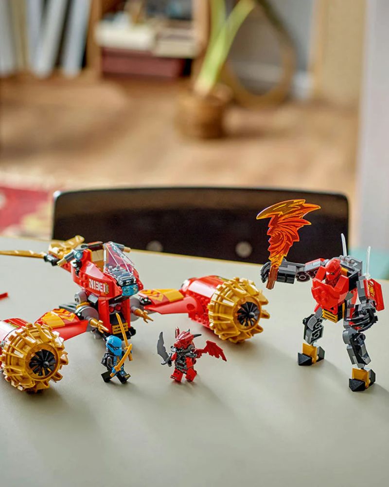 Kai’s Mech Storm Rider (71830) combo ninja toy lets boys and girls aged 7 and over recreate exhilarating scenes from season 3 of the NINJAGO Dragons Rising TV show. Kids can play with the large action toy before they separate it into 2 smaller vehicles: Kai’s mech with posable head, arms and legs, a cockpit and a large storm blade accessory, and Nya’s flying motorbike toy with a cockpit, movable wings and 2 spring-loaded shooters.