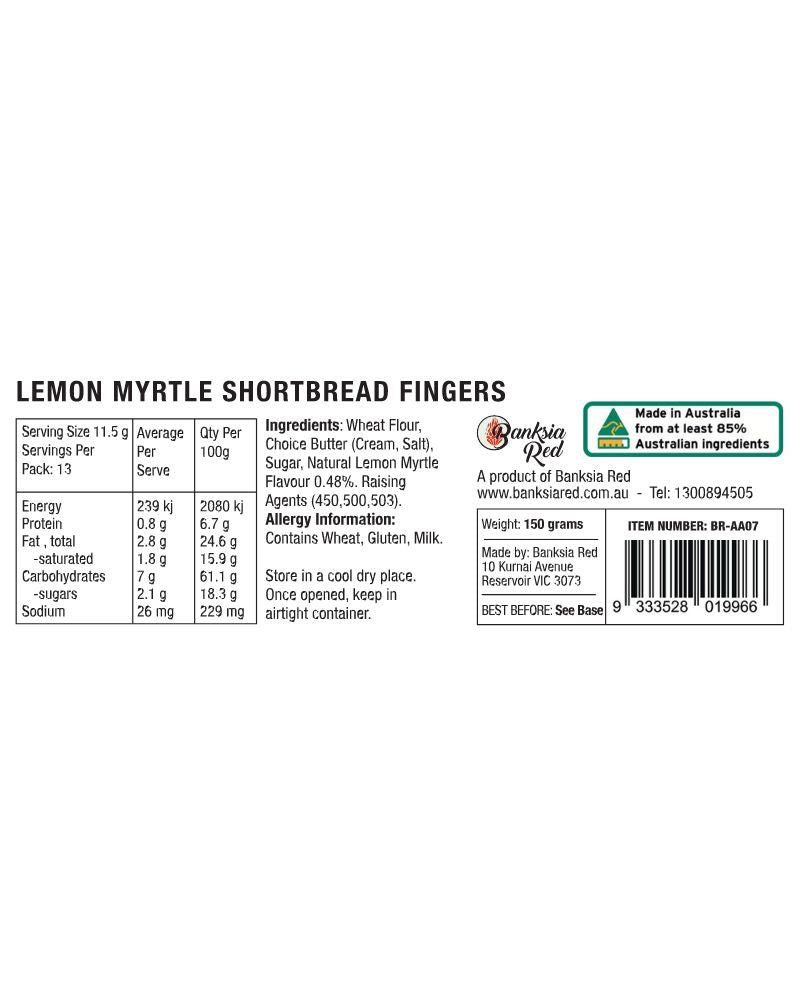 Banksia Red 'koala' Lemon Myrtle Butter Finger Biscuits 150g