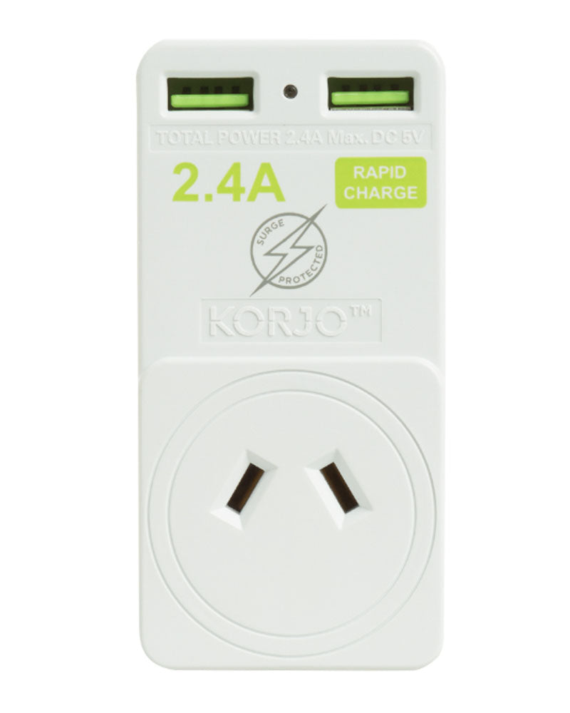 KORJO 2 PORT USB & POWER ADAPTOR 2X USB Sockets JAPAN
