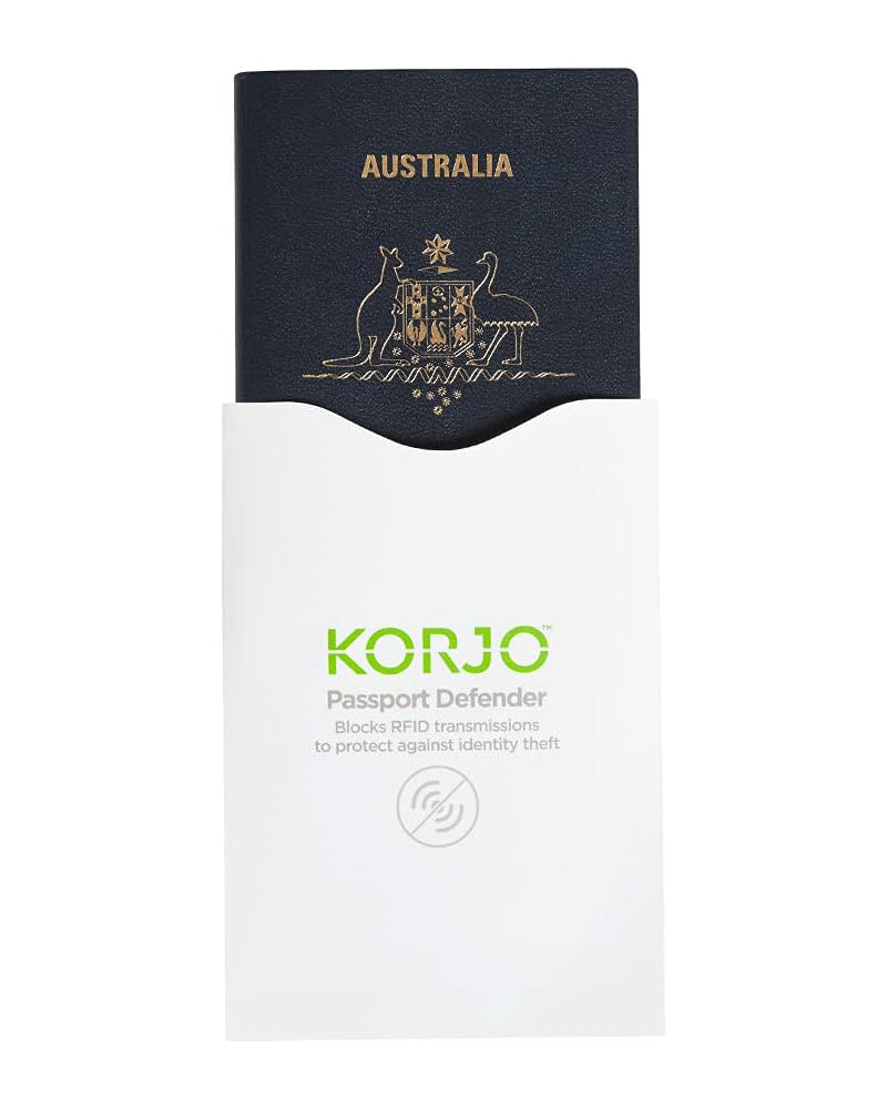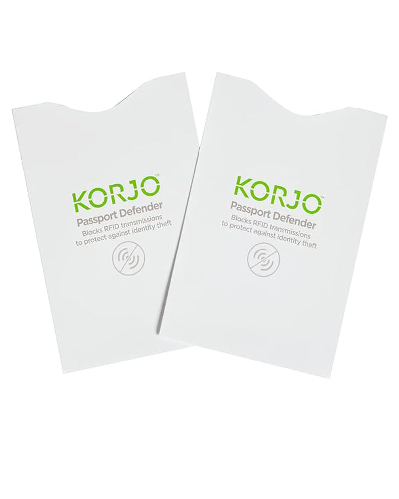 Korjo Passport Defenders are sleeves that shield your passport from RFID readers. Protect your passport information from data theft by placing your smart passport inside the Passport Defender. Comes in a pack of 2.