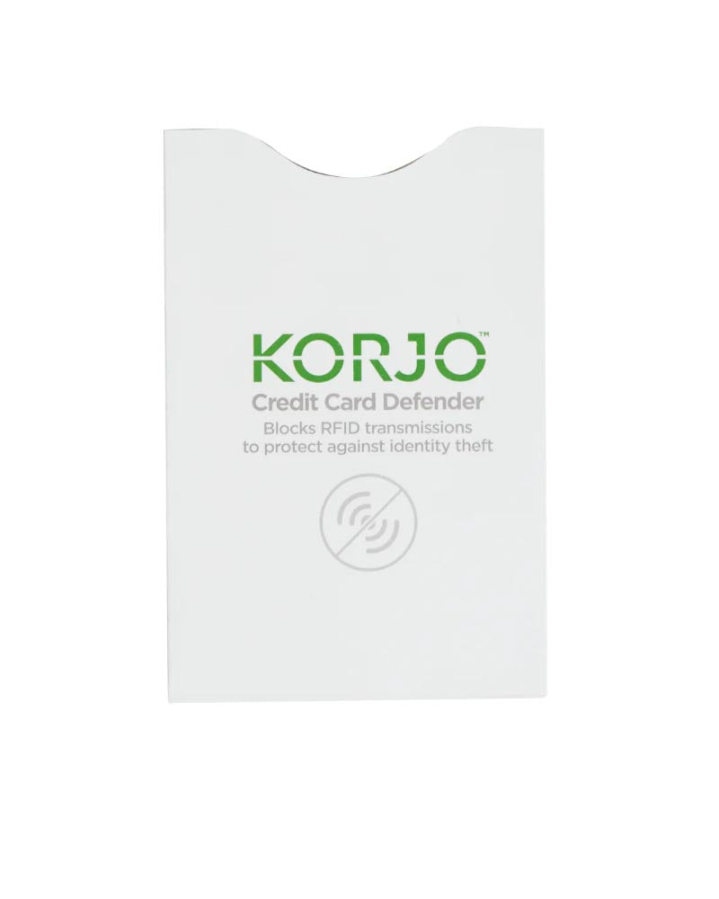 The KORJO CREDIT CARD DEFENDER has a patented embedded RFID Shielding Substrate which prevents RFID theft.