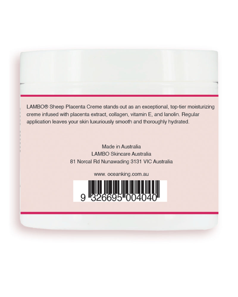 LAMBO®Sheep Placenta Creme is a unique high quality moisturising cream with Placenta Extract, Collagen and Vitamin E and Lanolin. With daily use, skin feels silky smooth and moisturised. Apply all over face and neck every day after cleansing.