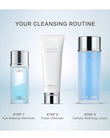 This biphase formula is composed of a blue lower phase, infused with panthenol known for its soothing properties, and a crystal-clear upper phase, enriched with Cornflower Extract and oils to dissolve all makeup, even resistant waterproof formulas. Upon shaking, the two phases are seamlessly blended for an effortless, luxurious cleanse.