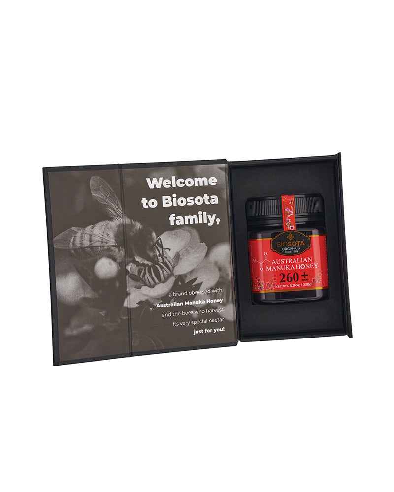 Discover the ultimate luxury gift with Biosota's Manuka Honey MGO 260+. Packaged in our elegant and sophisticated gift box. Indulge in the exceptional quality and luxury of Biosota's Manuka honey MGO 260+.
