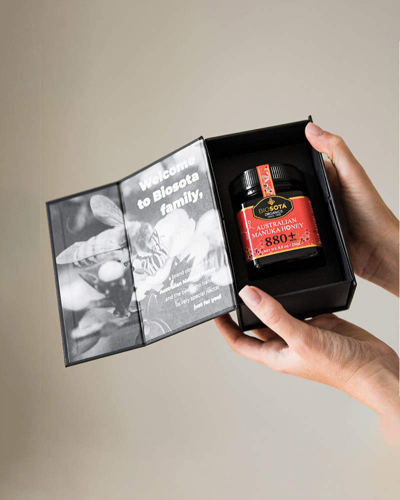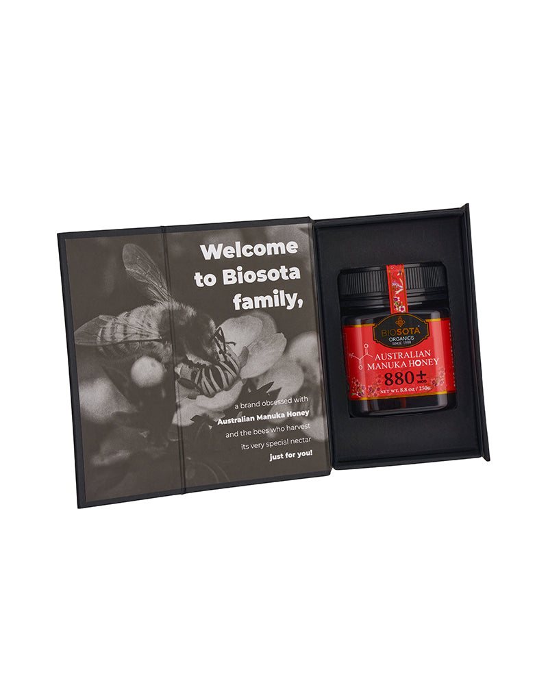 Indulge in the ultimate luxury gift with our Certified Organic Manuka Honey MGO 880+ (NPA 20+), presented in a premium gift box.