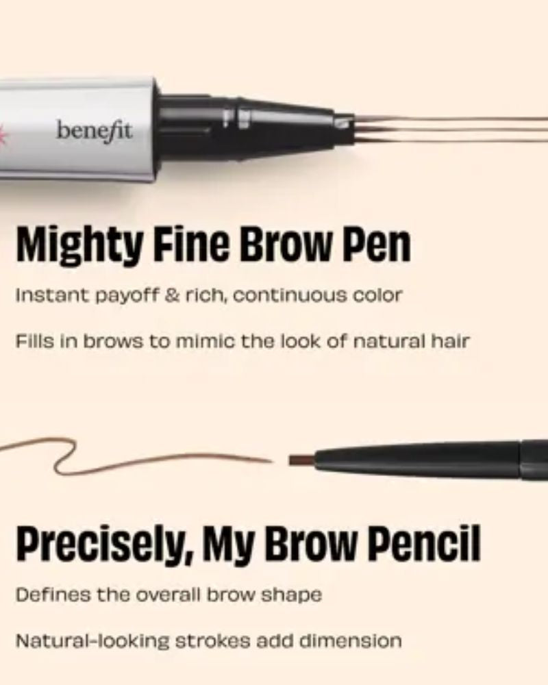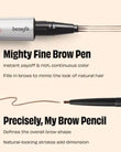 Fill and define your brows with Benefit Mighty Fine Brow Pen. With three ultra-fine 0.1mm brush tips (that’s about as thin as a piece of paper), this brow pen is perfect for adding fullness and shape to your brows while still looking natural. The long-wearing formula stays put for up to 24 hours, and resists sweat, water, smudging and transfer - now that’s mighty fine.