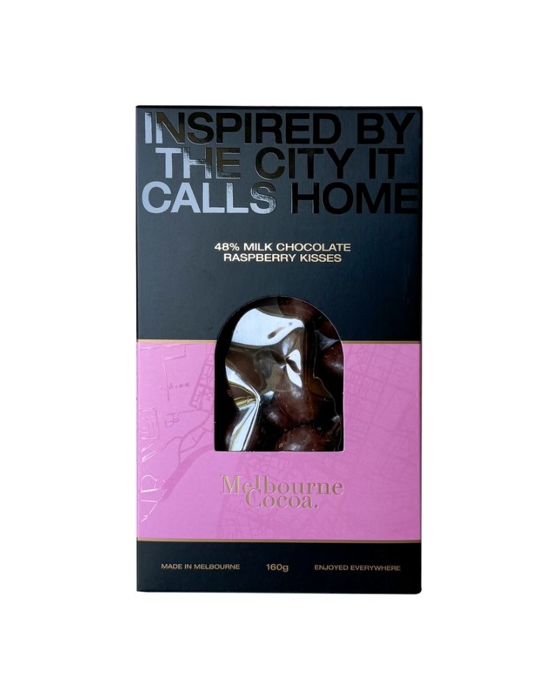Melbourne Cocoa 48% Milk Chocolate Raspberry Kisses 160g