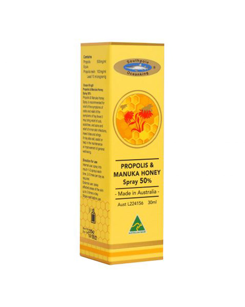 Ocean King® Propolis & Manuka Honey Spray is recommended for the relief of the symptoms of colds and hay fever.