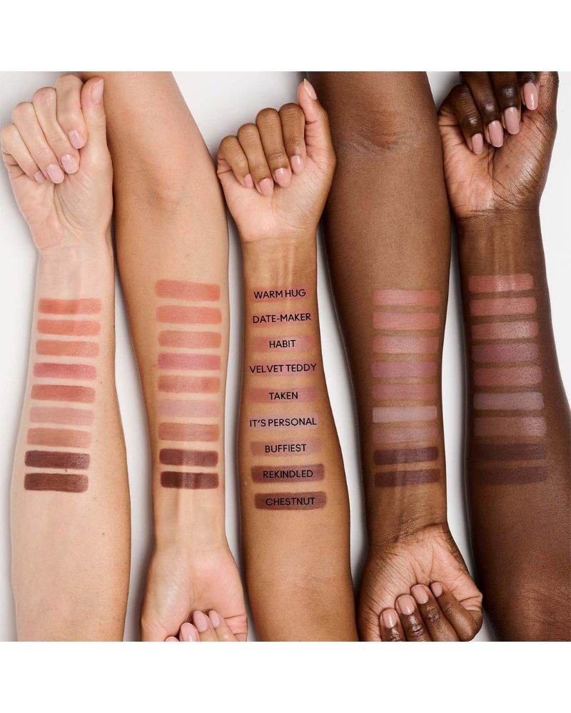 Whip up a monochromatic, hazy matte look with Powder Kiss Lip + Cheek Mousse. This multi-use liquid mousse provides the perfect blur of 10-hour moisturizing longwear on lips and a soft-focus flush of colour on cheeks. Its weightless, whipped texture creates a comfortable and uniquely spreadable formula that instantly blurs lips and effortlessly enhances your complexion for a natural-looking flush. A special blend of powders and emollients glide on evenly while staying pillowy soft and smooth all day for an ultra-diffused look that’s non-creasing and non-drying. Its hourglass-shaped applicator perfectly hugs the curves of your lips to blur lip lines and provide a smoothing effect.