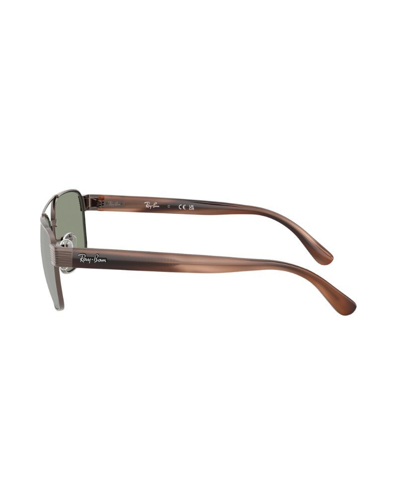 Enhance your wardrobe with a sharp and masculine design by Ray-Ban, the RB3751 sunglasses. Crafted as a bold square silhouette, this design flaunts a mixed construction that exudes timeless appeal with a touch of edge. The copper frame is detailed with a double bridge and a new cutting-edge hinge mechanism for a sleek and sophisticated finish. For a striking contrast, the RB3751 sunglasses are fitted with cool green and silver glass mirror lenses that offer sharp vision and a standout look for any occasion.