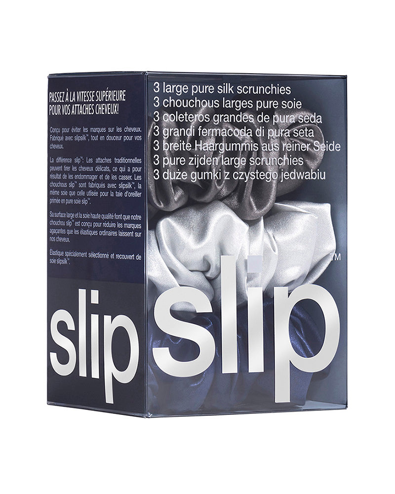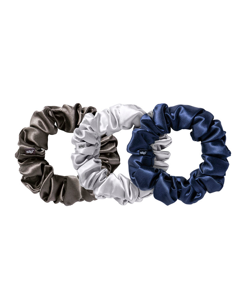 1 x charcoal / 1 x silver / 1 x navy pure silk large scrunchies
