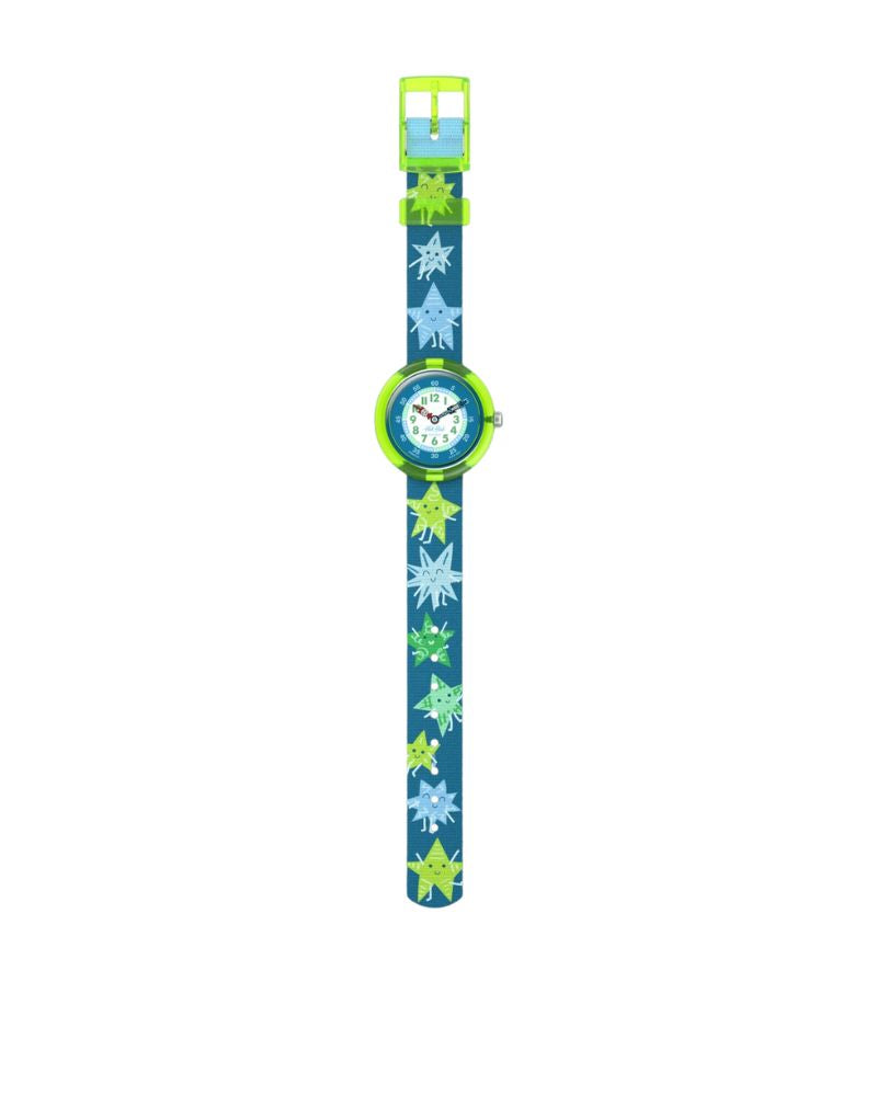 Flikflak Starry Glow 32Mm Quartz Green Dial Green Recycled Pet Strap Fbnp242
